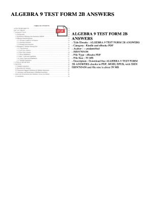 Read Online algebra 9 test form 2b answers Doc